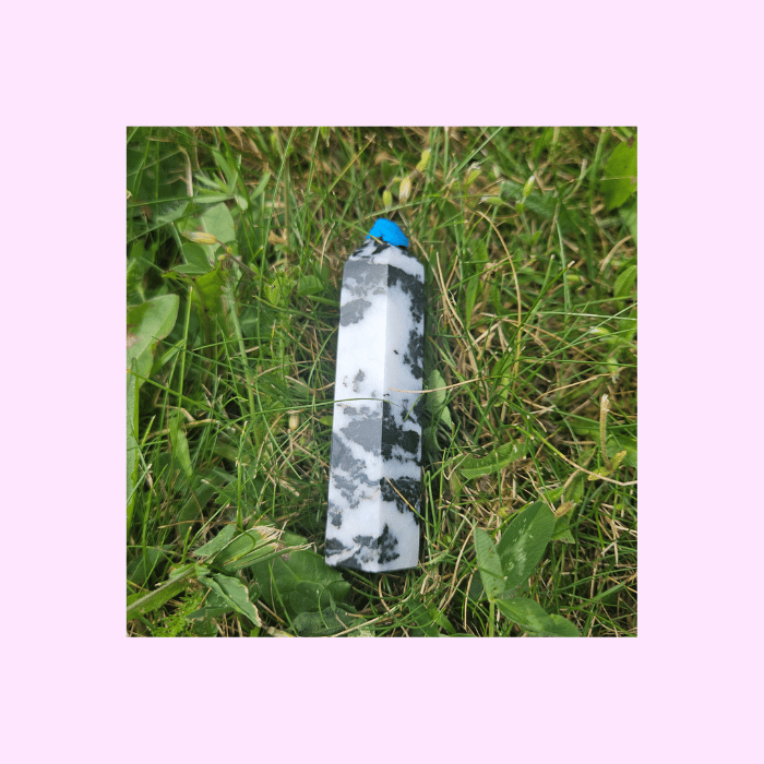 The banding on this tower is stunning. Zebra jasper is a form of jasper with heavy veins of the chalcedony stone.